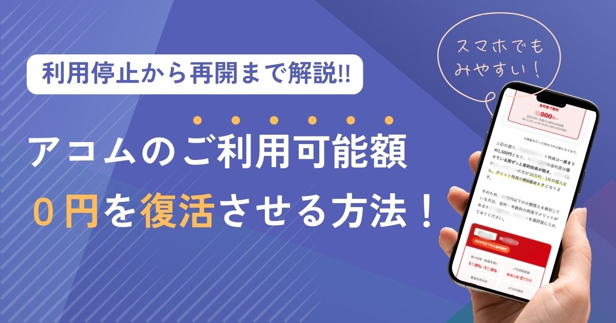 この記事では、アコムの利用可能額が0円になる7つの原因と復活方法、復活できない場合の代替手段まで詳しく解説します。