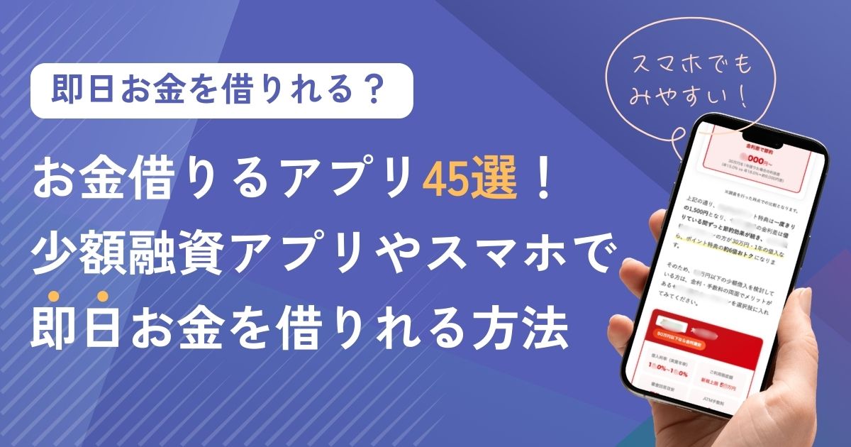 なお、本記事では、この大手カードローン5社を中心に全45種類のアプリをタイプ別に比較しています。