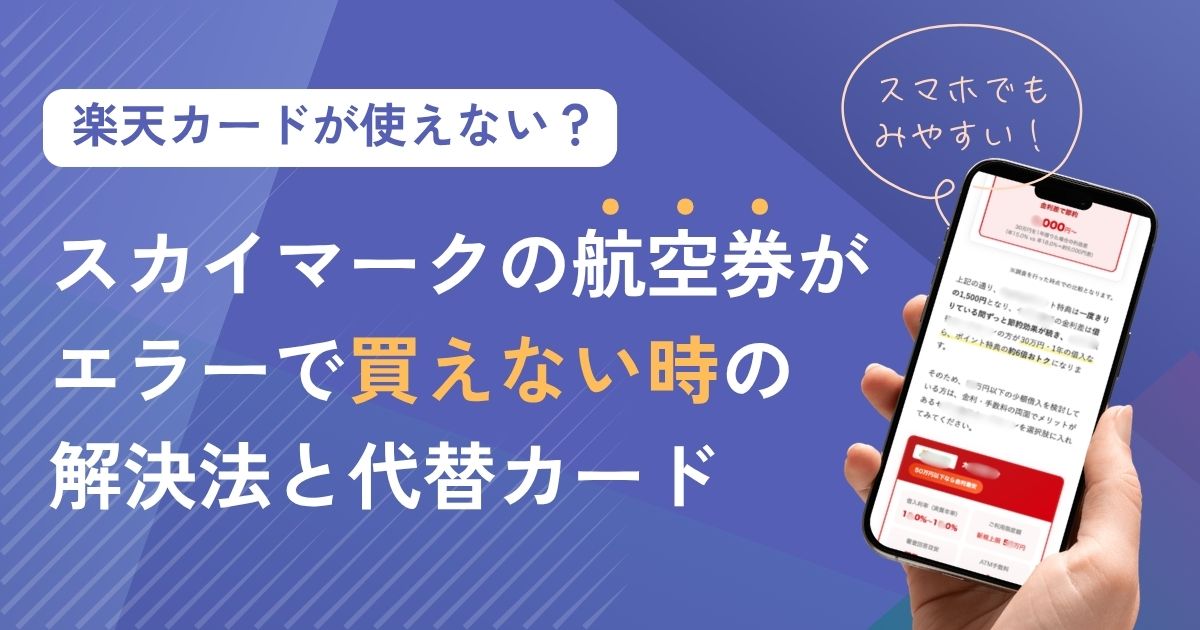 この記事では、スカイマークで楽天カードが使えない原因と対処法を解説し、エラーが解決しないときの代替カードまで紹介します。
