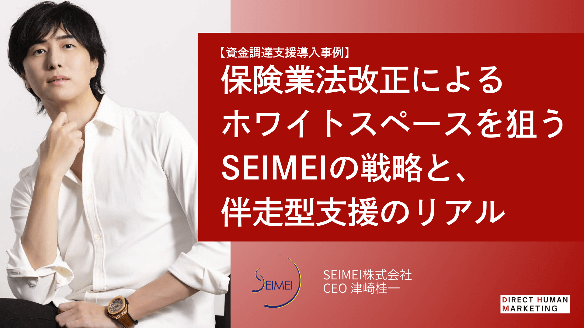 弊社CEO津崎がダイレクトヒューマンマーケティング様のインタビュー記事に掲載されました ■インタビュー記事のリンク 保険業法改正によるホワイトスペースを狙うSEIMEIの戦略と、伴走型支援のリアル 記事一覧 次の記事