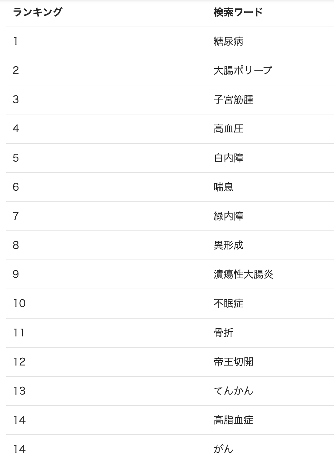 2022年4月の病名検索ランキングを公開 ■総括 2022年4月はコロナの検索が15位以内には入らず、感染症が落ち着いてきたことを読み取ることができます。 当社とお取引を開始頂いた保険会社様とも連携しながら、近い将来、地域ごとの検索傾向分析も開始する予定です。 前の記事 記事一覧 次の記事